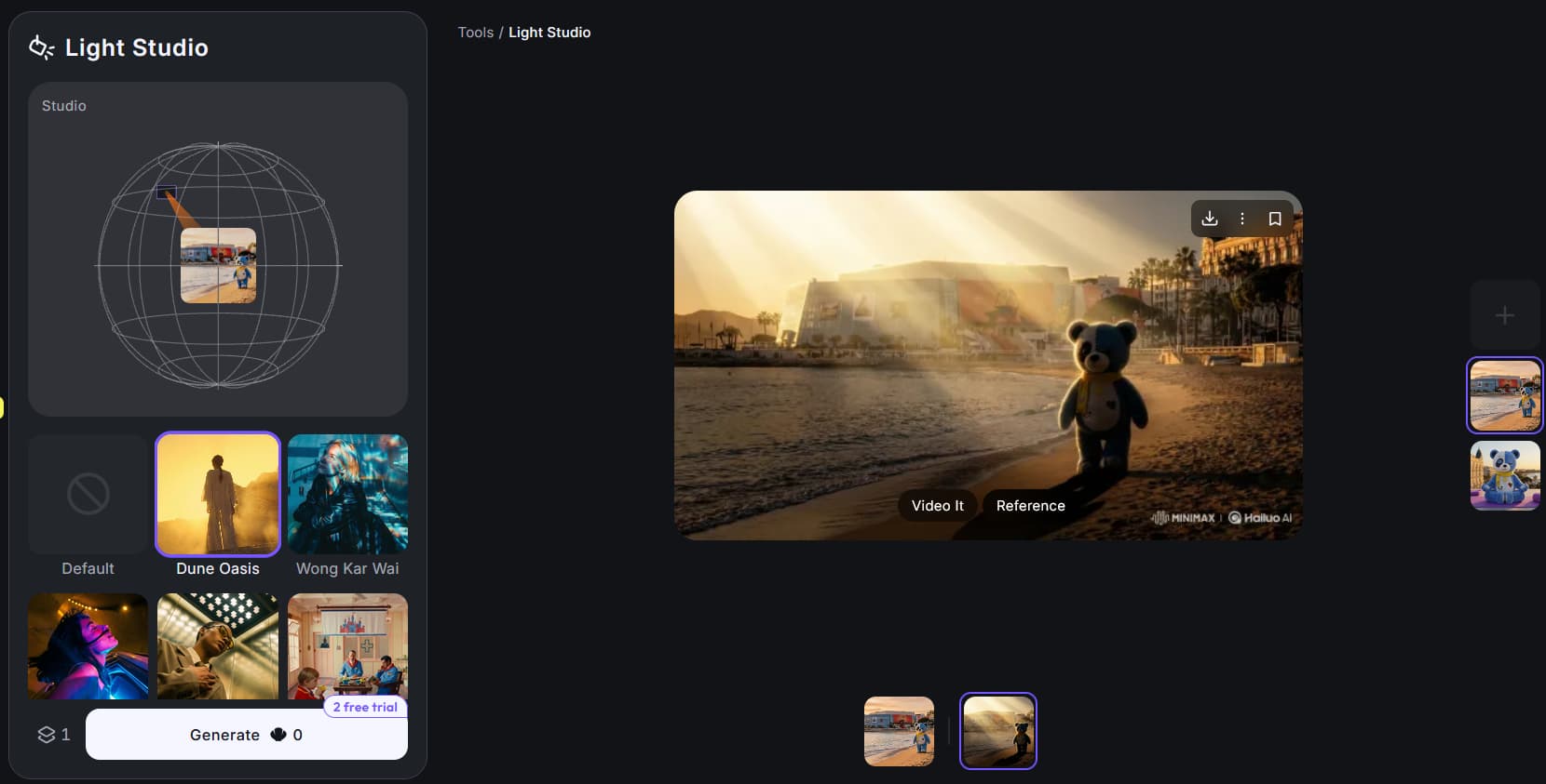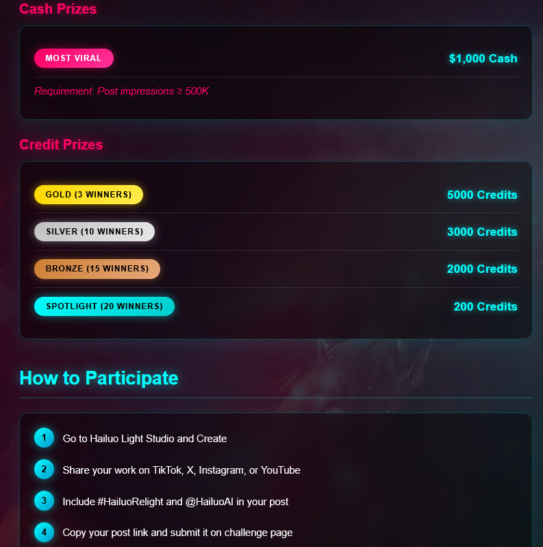 4 essais gratuits actuellement et un jeu par Hailuo ( type promo post reseaux et selection gagnants credits)