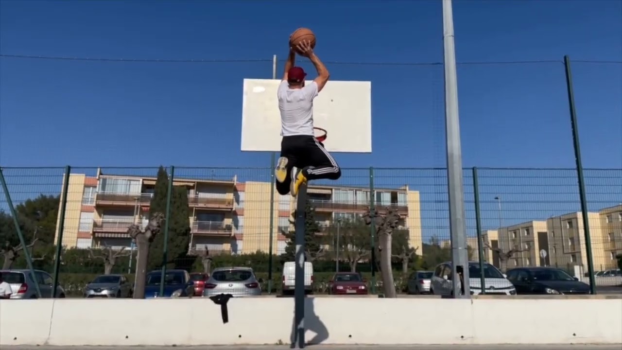 Filme-toi en train d’amorcer un geste impossible. Exemple : t’élancer pour dunker depuis le milieu du terrain